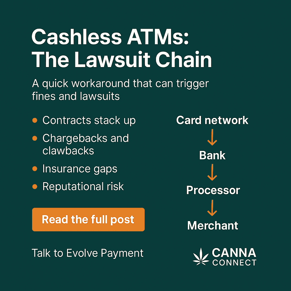 The not so well known truth here is that the moment you route a cannabis sale as an ATM transaction, you invite the full weight of card network rules, bank obligations, and processor contracts into your shop. The headlines are starting to catch up, and the storyline is already clear as Visa has identified a major cannabis operator using cashless ATMs and is taking action.